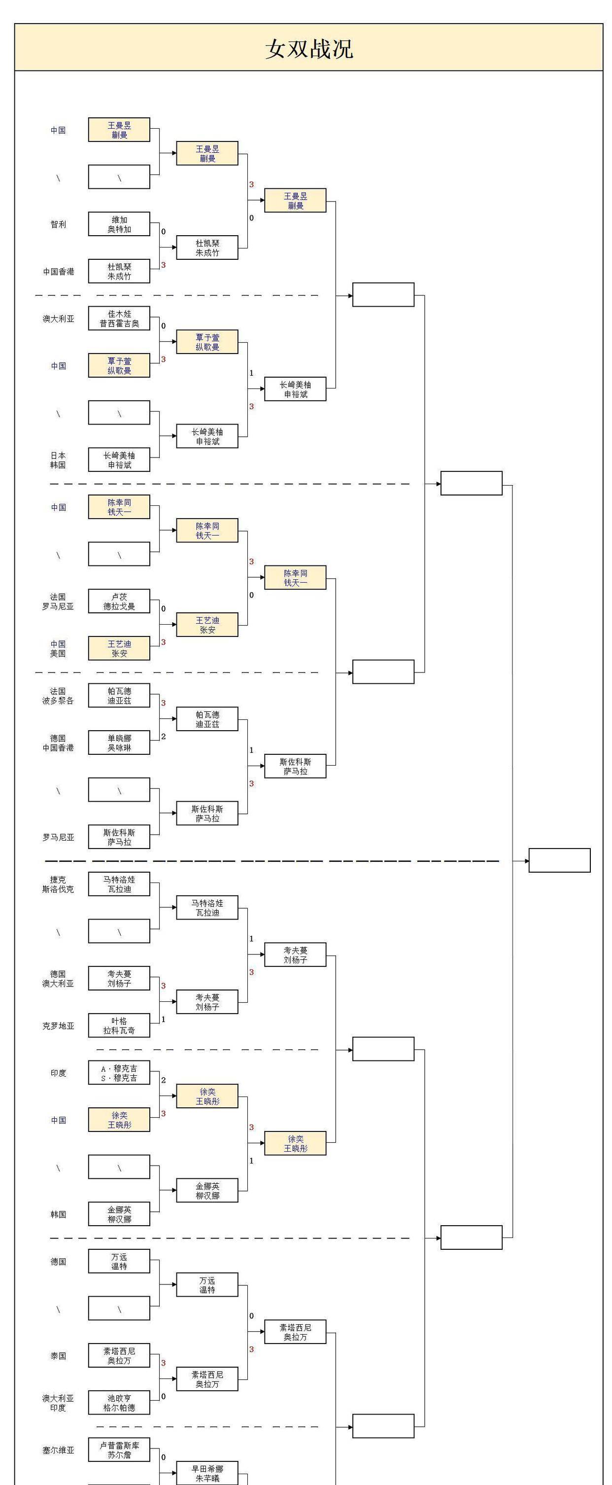 女双项目由王曼昱和蒯曼的世乒赛冠军组合领衔,她们将迎战韩国与日本的跨国配对申裕斌和长崎美柚。跨国组合虽然配合时间不长,但往往能带来不同技术风格的融合。