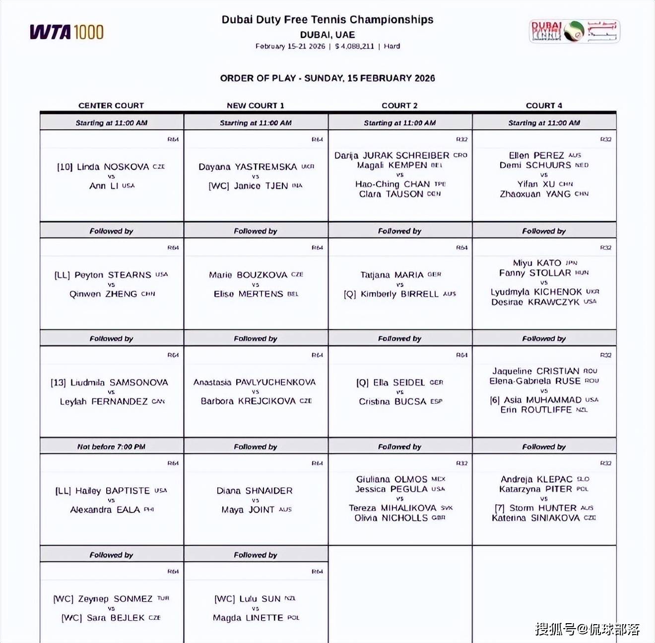 WTA巡回赛,女子网球,WTA排名,WTA赛程,女单四大满贯,女子网球直播/聚焦2025 WTA女子网球巡回赛,涵盖四大满贯、WTA1000/500/250赛事的赛程、排名、战报及竞猜推荐,为中文网球爱好者带来一站式资讯导航。北京时间2月14日,WTA1000迪拜站公布了首日赛程。郑钦文将大约于15日16点30分在中心球场登场亮相,对阵美国名将斯特恩斯。