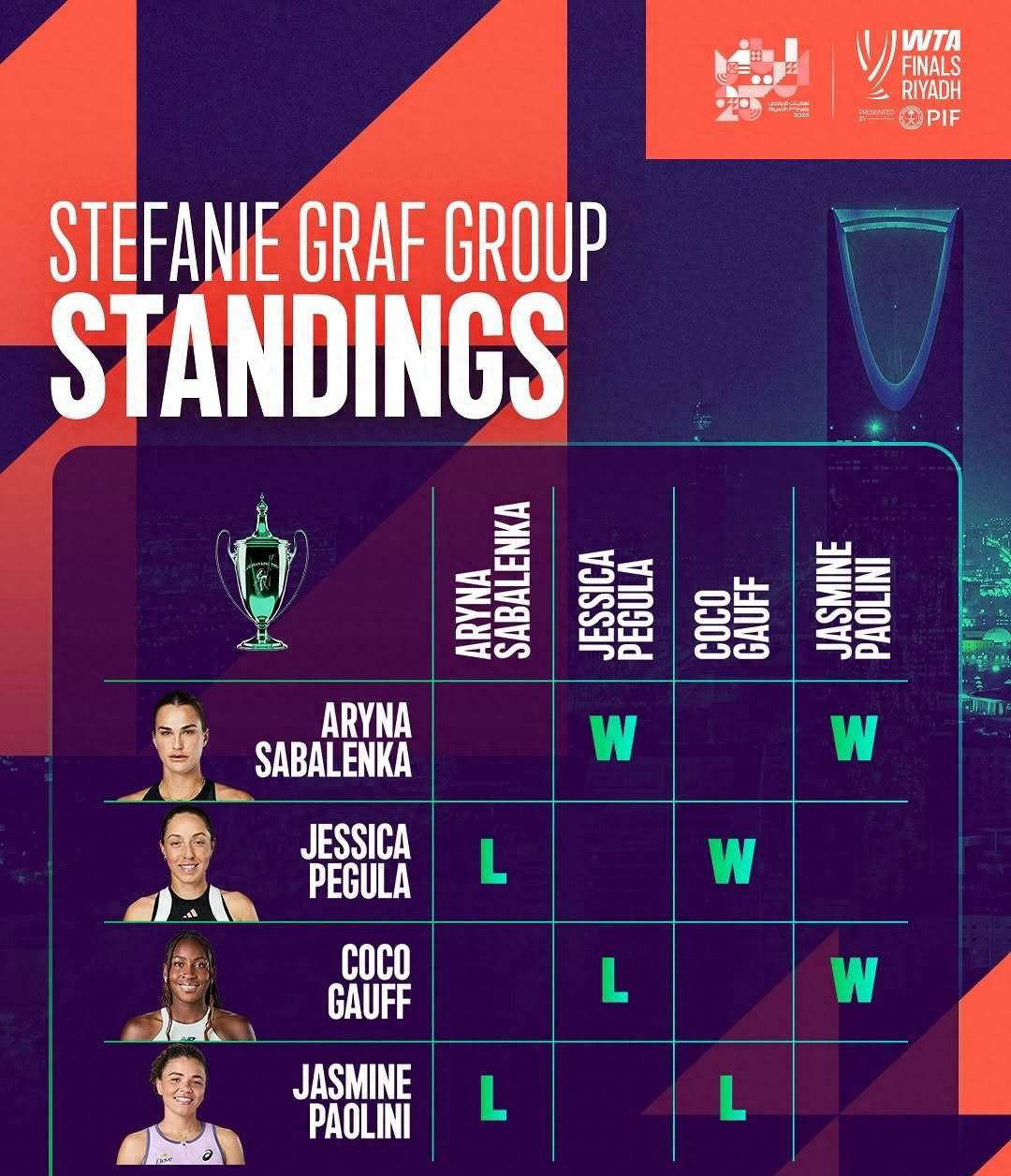 - WTA总决赛晋级情况揭晓:单打1人WTA巡回赛2025赛程__女单排名直播签表全