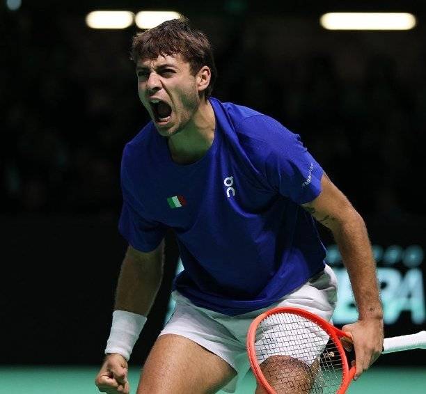 我们再把目光转回赛场。北京时间今晨,2025赛季戴维斯杯网球团体赛结束了首场半决赛,缺少了辛纳的意大利队凭借贝雷蒂尼和科博利在两场单打比赛中的胜利,大比分2-0击败比利时队,连续三年打进决赛,距离成功卫冕只差一场胜利。在这场较量中,意大利队的二单科博利在决胜盘抢七中挽救了7个赛点也浪费了6个赛点,与对手激战了32分,最终以6-3 6-7(5) 7-6(17-15)艰难取胜。