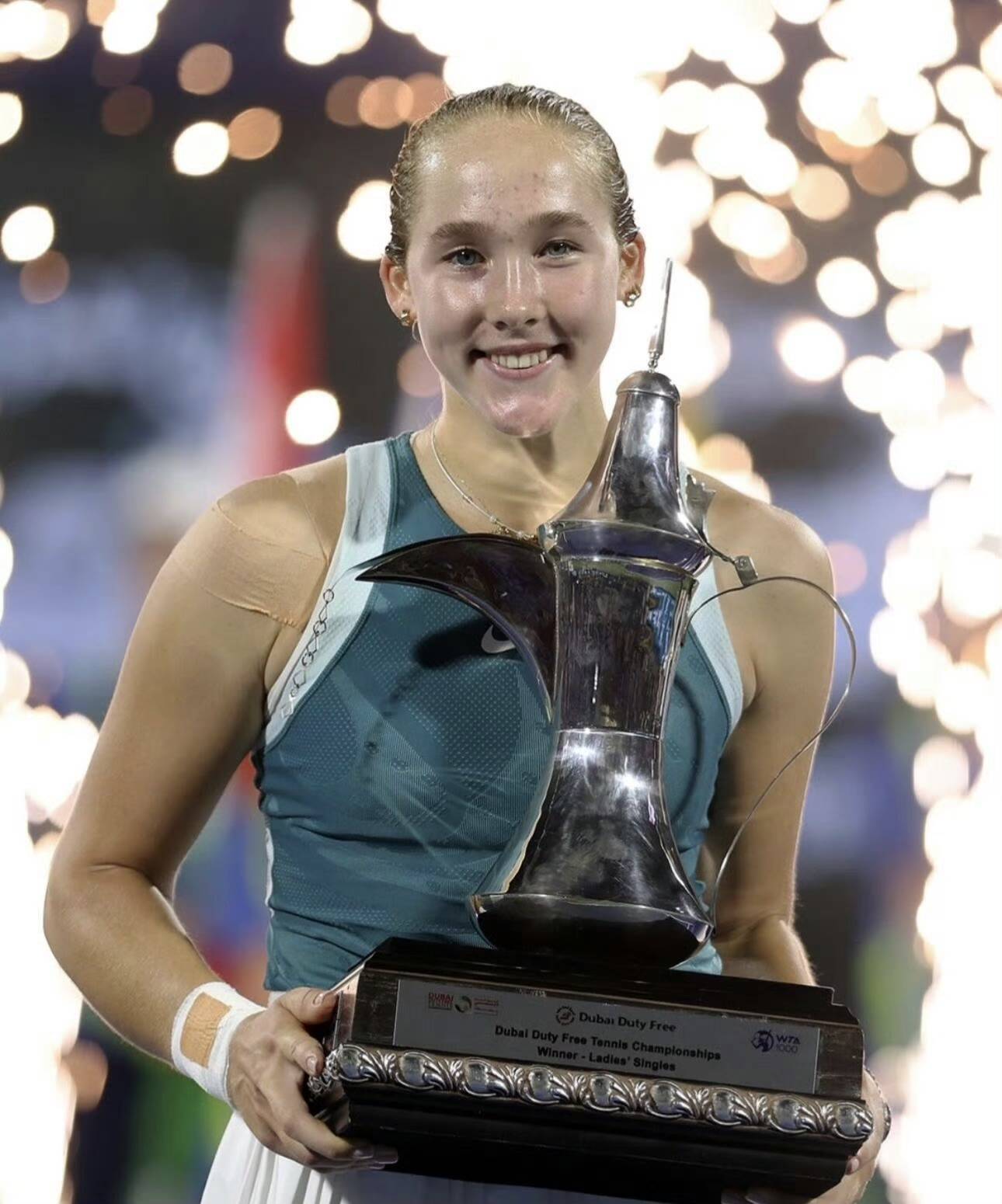安德列娃的连胜始于迪拜站。在这站WTA1000级别的赛事中,她先后击败了三位大满贯冠军得主——万卓索娃、斯瓦泰克和莱巴金娜,夺得职业生涯首个WTA1000级别冠军。更为惊人的是,她成为WTA1000赛事历史上最年轻的冠军。