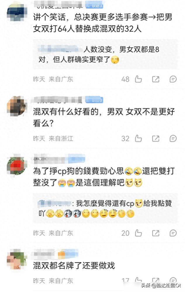 且不说混双是否更好看,但需要考虑的是如何增添一些元素,使其变得更具趣味性和观赏性,包括讲解台上的解说员、裁判等。