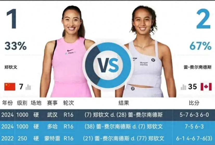 这是奥运冠军郑钦文第四次与费尔南德斯交手,前几次的较量中,郑钦文只赢了一场。本次在武汉网球公开赛16强赛上,郑钦文通过顽强的斗志,逆转费尔南德斯晋级。