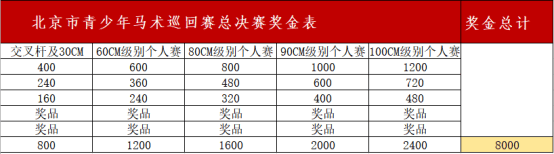 d.设年度“最佳新秀奖”:以全年分站赛交叉杆及0.30M级别、60cm级别、80cm级别、90cm级别、100cm级别中,16岁以下的取得较好成绩并在全年分站赛取得最高积分的青少年骑手为主要参考依据。