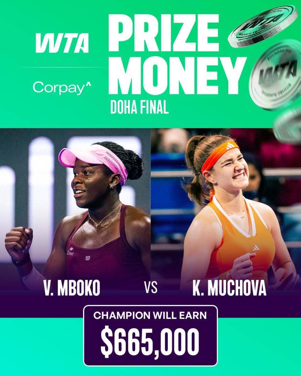 WTA巡回赛,女子网球,WTA排名,WTA赛程,女单四大满贯,女子网球直播/聚焦2025 WTA女子网球巡回赛,涵盖四大满贯、WTA1000/500/250赛事的赛程、排名、战报及竞猜推荐,为中文网球爱好者带来一站式资讯导航。在卡塔尔多哈,一场备受瞩目的WTA1000级别网球盛宴即将迎来最高潮。北京时间2月14日晚23点过后,加拿大新星姆博科与捷克名将穆霍娃将为冠军荣耀展开巅峰对决。这场决赛的胜者不仅将捧起象征至高荣耀的冠军奖杯,还将斩获1000个宝贵的积分和高达665,000美元的巨额奖金。而失之交臂的亚军,也将获得650个积分和385,001美元的丰厚奖励。