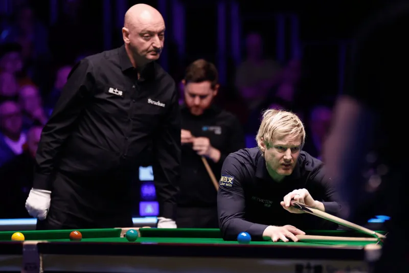 这场紧张的决胜局战至最后四颗彩球,琼斯尝试远台进攻棕球至顶袋,可惜角度稍偏。罗伯逊打出强烈低杆,精准打进咖啡球,并走位到贴近底库的蓝球位置。随后他面对一颗难度不小的粉球,仍稳稳打进,锁定胜局。