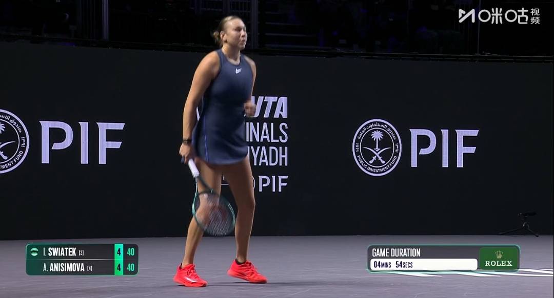 进入决胜盘,阿尼西莫娃越战越勇。首局保发后,她在第二局乘胜追击,完成破发,以2比0领先。随后,她再接再厉,保住第三局的发球局,将领先优势扩大到3比0。尽管斯瓦泰克在第四局艰难保发,追回一局,但阿尼西莫娃在第五局再次保发,并在第六局再度破发,将比分拉开至5比1。最终,阿尼西莫娃以6比2拿下决胜盘,以总比分2比1逆转战胜斯瓦泰克,为小组出线奠定了坚实的基础。