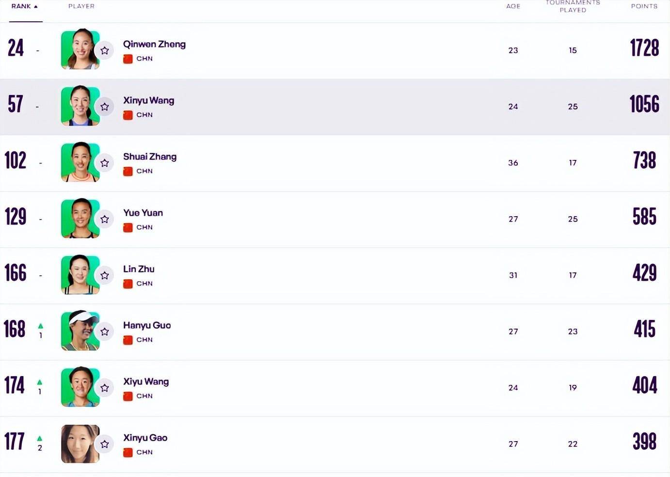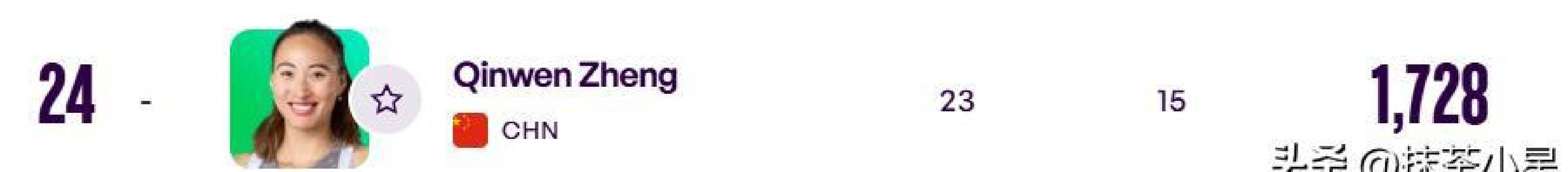 排名里,中国球员郑钦文排第24位。萨巴伦卡、斯瓦泰克和高芙还是稳稳排在前三,她们表现很稳定,是WTA一道好看的风景。